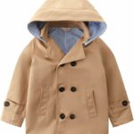 Image of Betusline Little Girls Khaki Hooded Trench Coat Button Up Jacket Hoodie, Khaki, 4-5 Years = Tag 120